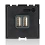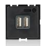Caricatore USB tipo A con tensione 5 Vd.c. per ricarica rapida di un singolo dispositivo elettronico fino a 3.000 mA o ricarica contemporanea di due dispositivi fino a 1.500 mA - alimentazione DIRETTA 110-230 V 50-60 Hz - 2 moduli