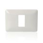 Questa e una placca da un modulo da installare fissandola ad incastro al supporto incassato nel muro; la placca rimarra pero in rilievo dal muro.