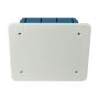 Questa e una scatola di derivazione da incasso rettangolare, in plastica pretagliata con coperchio e viti incluse.