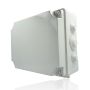 Questa scatola di derivazione rettangolare con coperchio basso, sulle pareti è dotata di coni passacavi e le sue dimensioni interne sono di 310x240x125mm.